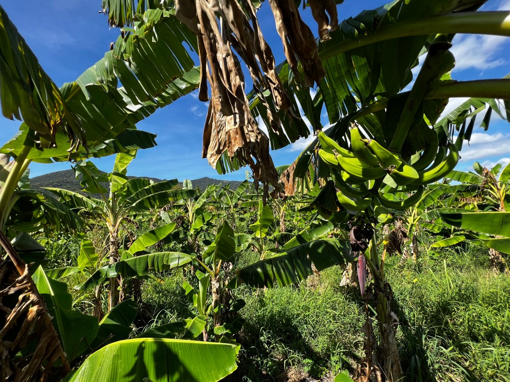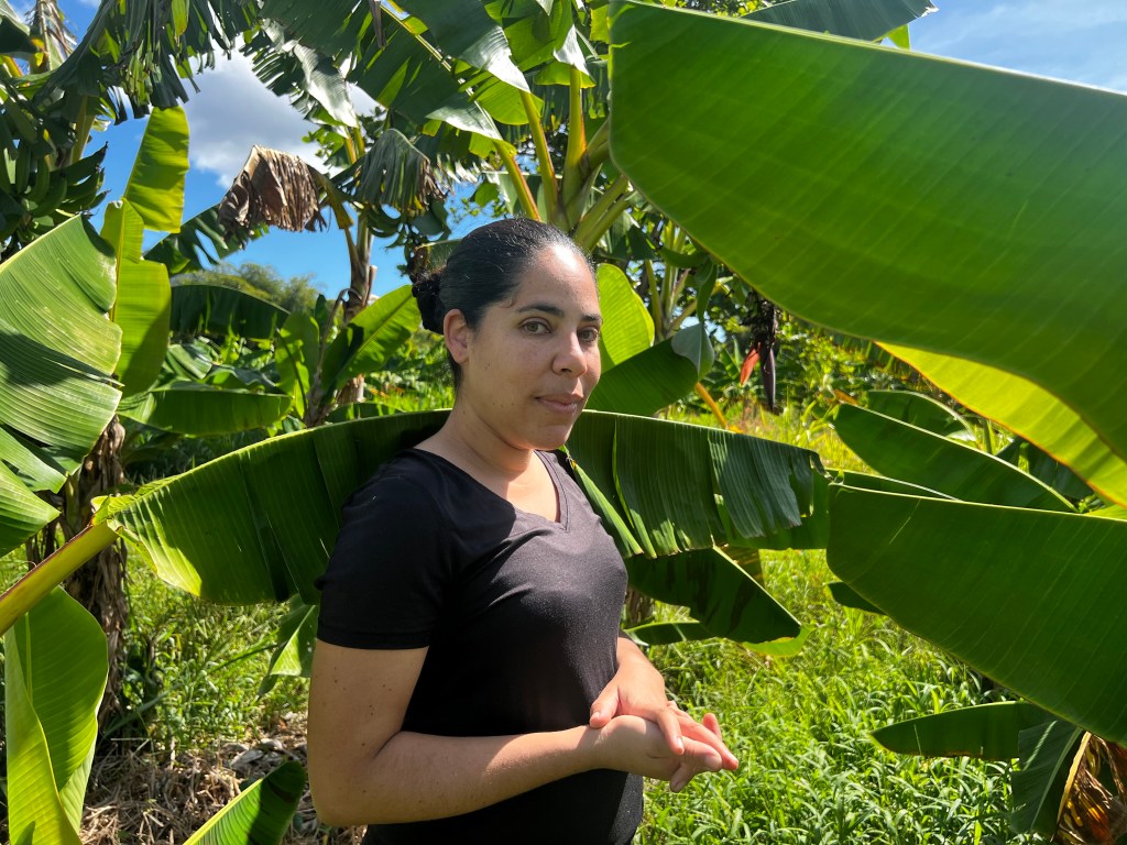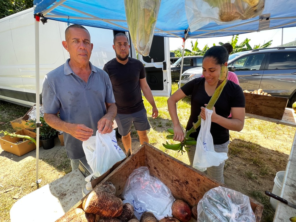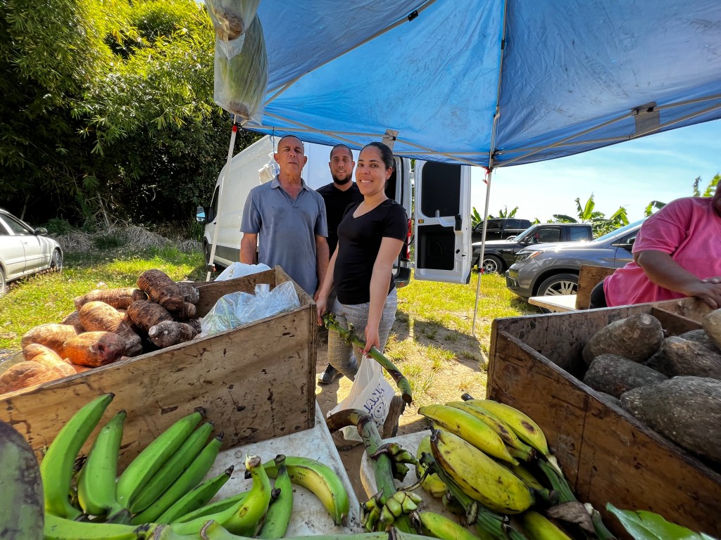 Todos los sábados, Nitziliany Guzmán vende sus productos recién cosechados en un puesto frente a su finca, en Maunabo. Su padre y su hermano, ambos de nombre Marvill, trabajan con ella.